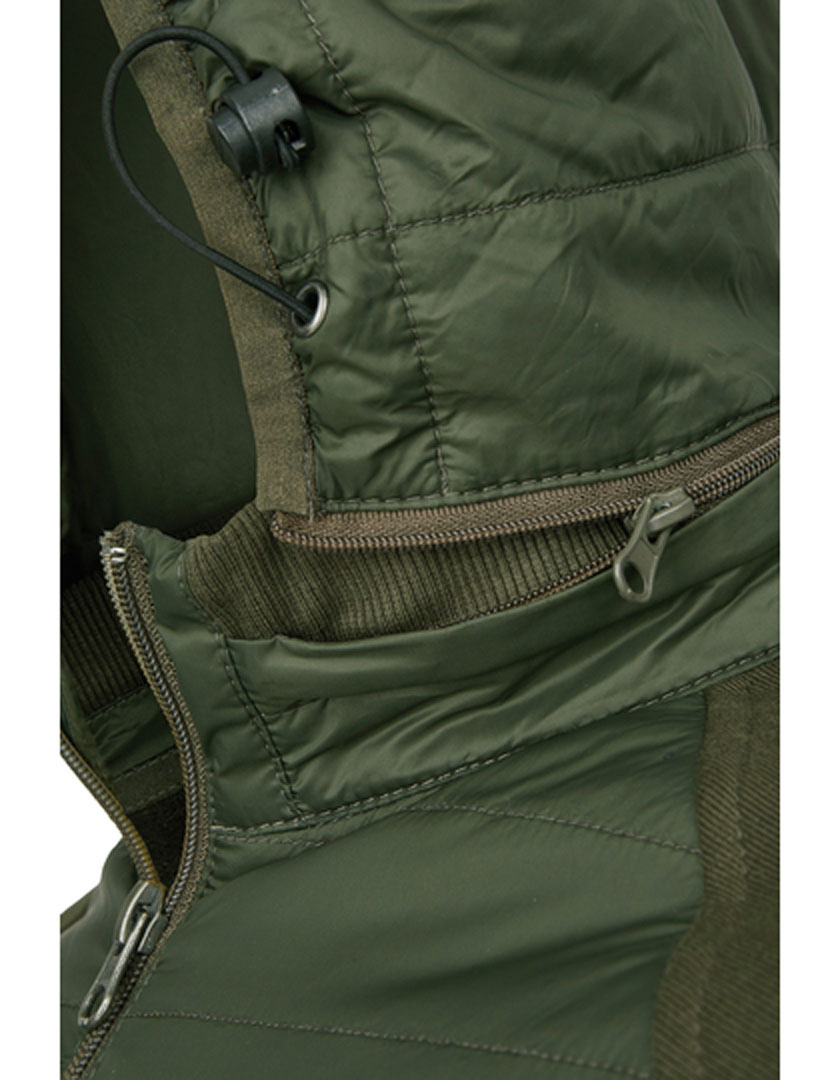 3-teilige, abnehmbare Kapuze, doppellagig und gesteppt, Tunnelzug und Kordelstopper, Ripp-Stehbündchen, Vorderseite aus Polyester, YKK Nylon-Reißverschluss mit Metall-Schieber vorne mittig und Abdeckung am Kinn, Seitentaschen mit YKK Nylon-Reißverschluss, gerippte Bündchen an Ärmelenden und Saum, Rückenteil und Raglan-Ärmel aus Baumwoll-Sweat-Jersey und innen aus weich aufgerautem Jersey Material, neutrales Größen-Etikett seitlich versetzt, entfernbares miners mate-Etikett, einlaufvorbehandelt, Enzym- und silikongewaschen, 30 °C waschbar